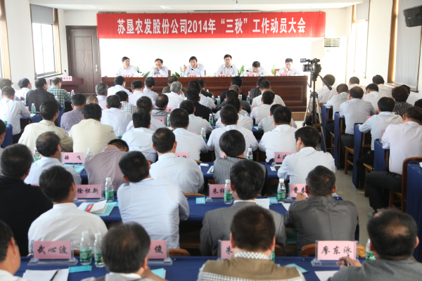 會(huì)議根據(jù)整體工作安排,圍繞今年“三秋”工作特點(diǎn),從農(nóng)業(yè)生產(chǎn)管理和生產(chǎn)技術(shù)的角度,就今年“三秋”工作進(jìn)行了全面、細(xì)致的布置。公司各大片區(qū)的代表——黃海、東辛、新曹、三河、南通等5家分公司,圍繞如何做好今年“三秋”工作進(jìn)行了表態(tài)發(fā)言;蘇墾農(nóng)發(fā)股份公司總裁姜建友,分別與各單位總經(jīng)理簽訂了2014年“三秋”工作目標(biāo)任務(wù)責(zé)任狀。會(huì)議還下發(fā)了《2014年“三秋”工作考核評(píng)比辦法》、《2014年水稻收購(gòu)工作意見》和《種植業(yè)基地拓展及管理暫行辦法》。