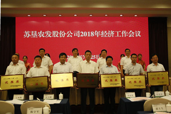 會議期間,蘇墾農(nóng)發(fā)黃海分公司、蘇墾農(nóng)發(fā)東辛分公司、蘇墾農(nóng)發(fā)臨海分公司與大華種業(yè)集團等四家單位作了交流發(fā)言。會議隆重表彰了一批上半年工作業(yè)績突出的先進集體,授予7家分公司2018年度“三夏”工作優(yōu)勝獎、6家分公司2018年度拓展基地“三夏”工作優(yōu)勝獎、3家分公司2018年度小麥高產(chǎn)獎、10家分公司2018年度夏熟效益獎、4家分公司2018年度拓展基地夏熟效益獎。7月24日晚,還專題召開蘇墾農(nóng)服工作推進會,就下一階段農(nóng)業(yè)社會化服務體系建設工作進行了部署要求。