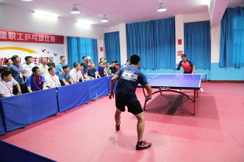 比賽開始后,大家迅速進入狀態,參賽選手揮汗如雨、積極拼搏,不到最后一刻決不放棄,爭奪十分激烈,球桌上不斷出現精彩對決。賽場外,吶喊聲和歡呼聲此起彼伏,興奮的“好球”聲不斷。