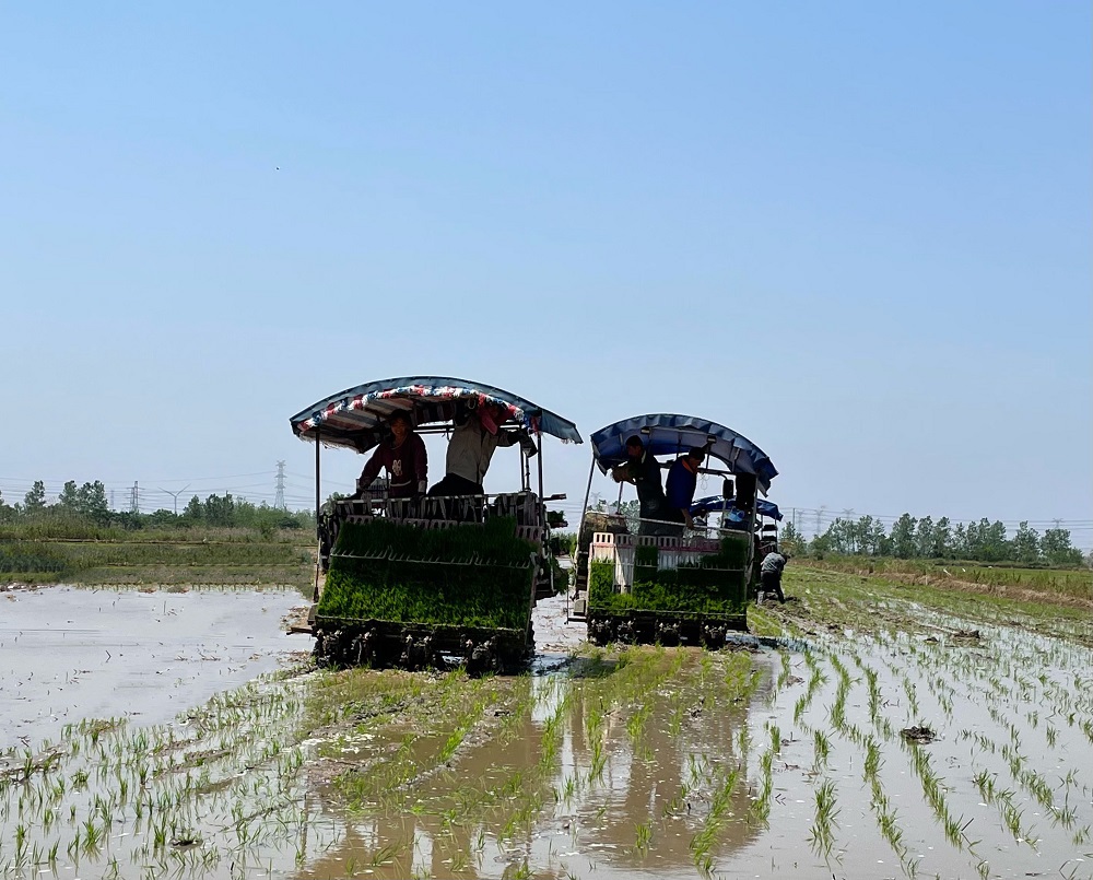 東壩頭按照“格式化整地、繡花式播種,試驗田般的操作、菜園樣的做法”的頂層設計,極大地引領精細化整地質量和裝備化種植的精準率提升,筑牢大面積稻茬基礎產量。在全面系統鞏固育秧成果的同時,東壩頭農業人正在沿著機插稻移栽“九度栽插法”所要求的方向不斷前行,為全年農業生產節本降效。高質量的育秧,提前謀劃部署的農機,蹲點的機關人員,確保秧、機、人能夠及時到位,搶晴好天氣進行栽插,為東壩頭水稻超高產奠定堅實的基礎。同時緊抓“1+2”發展思路,在1.32萬畝的耕地上塑起東壩頭農業人的新風彩和新形象,以優異的成績迎接黨的二十大,向建墾70周年貢獻每個東壩頭人的力量!