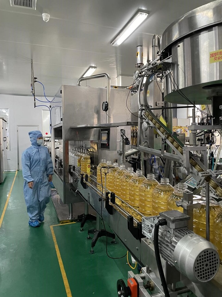 (金太陽糧油葵花籽油灌裝線正在灌裝)
