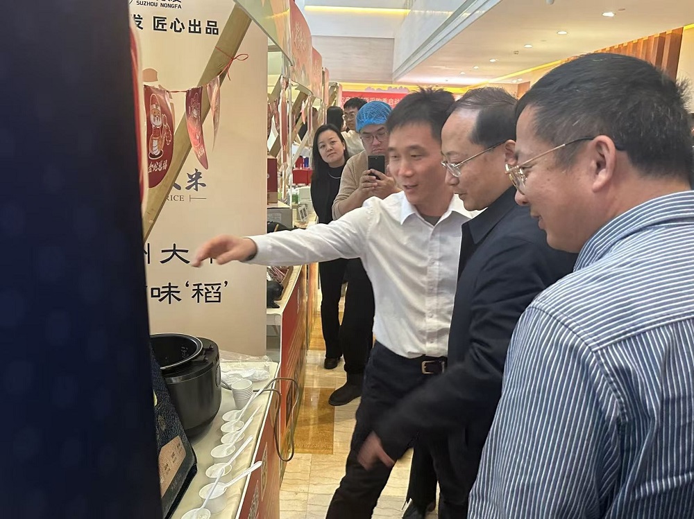 活動(dòng)現(xiàn)場(chǎng),“蘇墾15度鮮大米”受到來(lái)自全國(guó)各地企業(yè)客商的高度關(guān)注。蘇州蘇墾發(fā)揮全產(chǎn)業(yè)鏈優(yōu)勢(shì),依托標(biāo)準(zhǔn)化種植、科技低溫儲(chǔ)糧、現(xiàn)代化適度加工生產(chǎn)線(xiàn)和智能大米低溫庫(kù),打造“蘇州大米”代表性產(chǎn)品---“蘇墾15度鮮大米”。蘇州市副市長(zhǎng)查穎冬在現(xiàn)場(chǎng)饒有興趣得聽(tīng)取了“蘇墾15度鮮大米”介紹,對(duì)蘇州蘇墾現(xiàn)代農(nóng)業(yè)建設(shè)取得的成績(jī)給予肯定,希望蘇州蘇墾為蘇州現(xiàn)代農(nóng)業(yè)建設(shè)繼續(xù)貢獻(xiàn)力量,打造“蘇州大米”代表性產(chǎn)品。