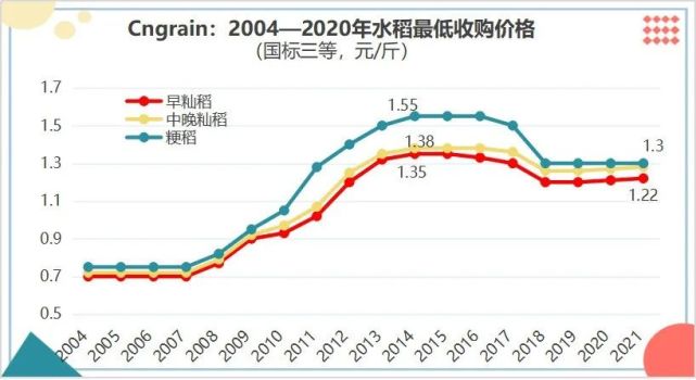 最低收購(gòu)價(jià)的調(diào)整是綜合考慮糧食生產(chǎn)成本、市場(chǎng)供求、國(guó)內(nèi)外市場(chǎng)價(jià)格和產(chǎn)業(yè)發(fā)展等的結(jié)果。稻谷是我國(guó)所有糧食品種中庫(kù)存水平最高、安全系數(shù)最大的品種,當(dāng)前稻谷市場(chǎng)基本面仍處于供需寬松階段。從我國(guó)近年來(lái)糧食安全的高度來(lái)看,寧多無(wú)缺是糧食儲(chǔ)備的重要方向,尤其經(jīng)歷過(guò)疫情大考,保證糧食供應(yīng)安全更顯得無(wú)比重要。