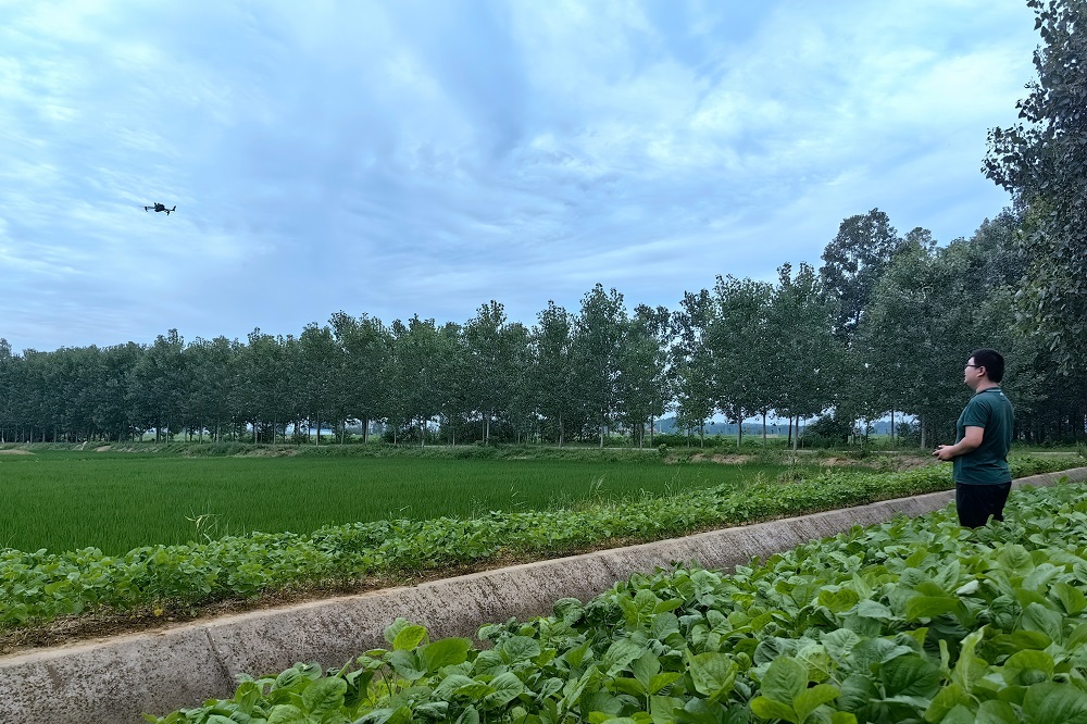 日前,在東辛分公司水稻種植田塊,技術人員正操控著“空中衛士”開展“巡田”工作,科學合理制定夏管方案。“傳統巡田工作,需要管理區管理人員到田里實地踏查本田中的各項情況,但在實際操作中,每個地塊依次踏查一遍是很難實現的,而無人機正好適用于本田數據的動態監測。它能全方位、多角度對水稻生長態勢以及田間實時作業信息等進行查看,突破傳統的平面巡查盲區。”分公司基地辦主任駱中正說道。